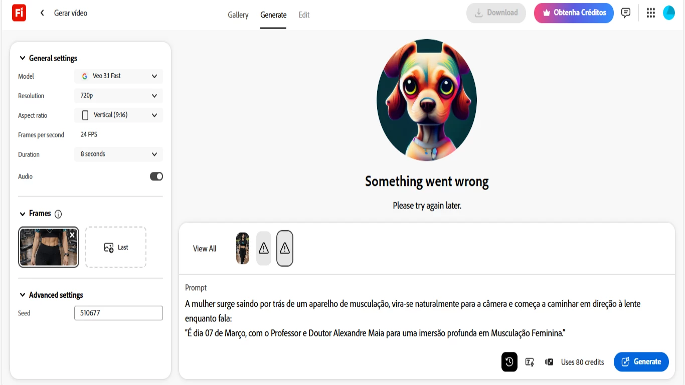 consegui gerar apenas 2 de 6s o 3 video não consegui mais