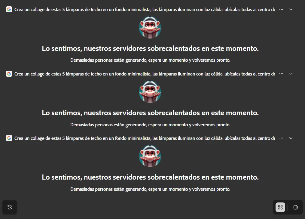 Estoy tratando de generar algunas imágenes con Firefly, sin embargo, la herramienta después de unos segundos pensando me genera el error de: