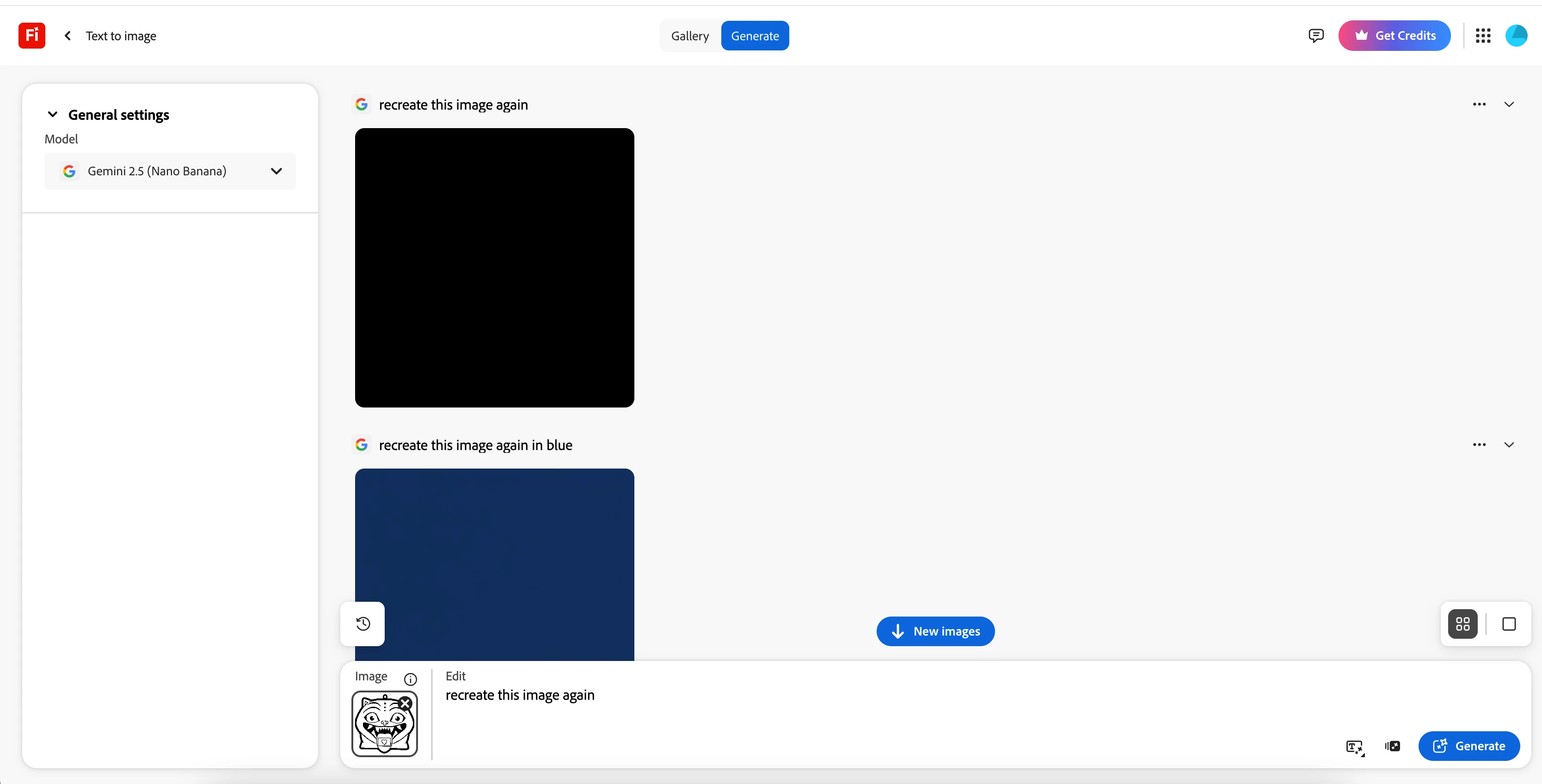 IIsa7888ParticipantForum|Forum|5 months agoSeptember 20, 2025Gemini not referencing imagesForum|Forum|5 months agoSeptember 20, 20254 replies168 viewsHello, Unfortunately I have noticed that the Gemini 2.5 (Nano Banana) is no longer referencing the images I upload. Unfortunately I didn't figure this out until I used most of my credits 😞 Can you please assist? Thank you in advance! 🙂 Imaging