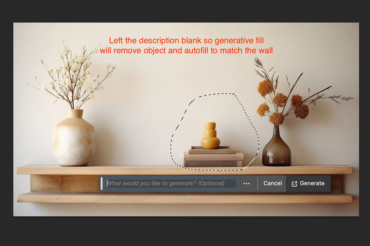 Generative fill: Cannot remove an object from an image using
