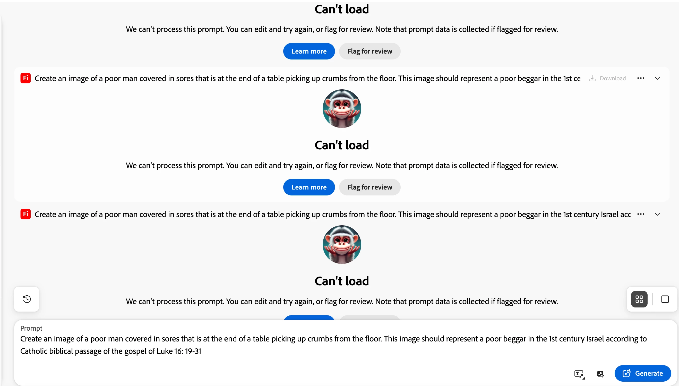 I am having problems generating any image for YouTube shorts. A lengthy description does not help.