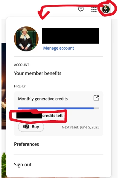 I read similar posts in the community and followed the instructions (going to https://account.adobe.com and clicking on the avatar in the top right corner), but there is nothing about the number of generative credits. I tried every entry of the menus, but in vain. What to do?