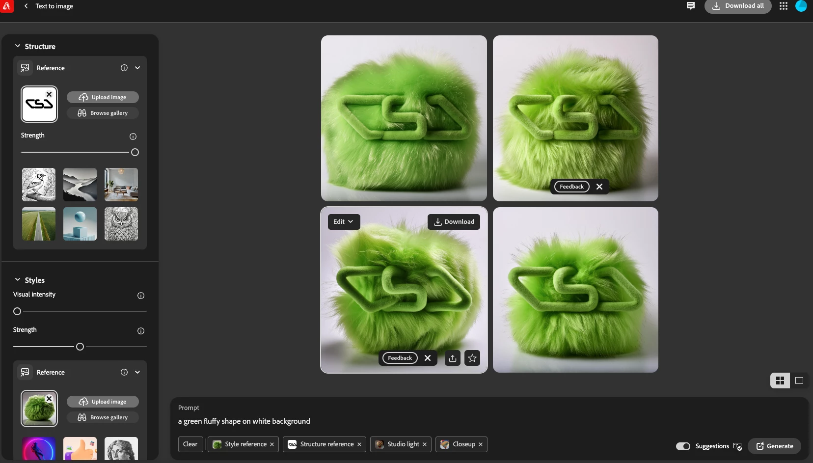I create a fur ball and ask it to be the reference image. In the sturcture create import my logo. The logo does not become a fur logo like in all of the tutorials. The fur appears in the background of the outline shape of my logo. I have been trying all day and am a veteran of photoshop for 30 years. No way am I making a mistake I just dont do that, I have created thousands of magazine covers over the years. It is a problem with Firefly for certain. There must have been a blunder by the programmers.