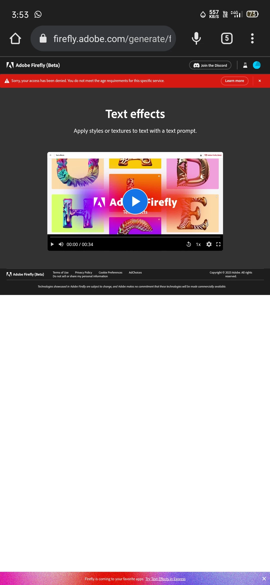 I generated the text effect but in the text if it cannot be used on my mobile phone . They also show me"Sorry, your access has been denied. You do not meet the age requirements for this specific service.