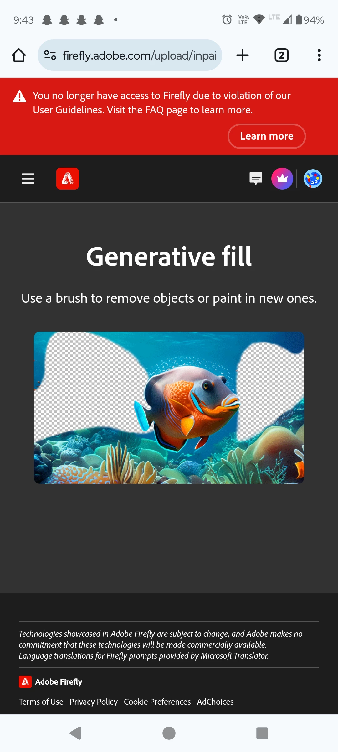 Despite doing nothing beyond the user guidelines, I am still banned from using Adobe firefly. please fix