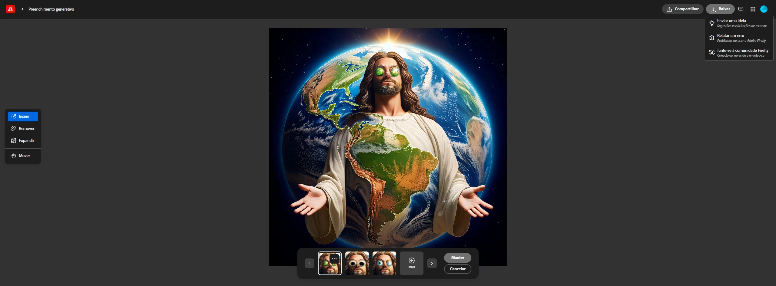 Eu desisti de tentar usar o Firefly para aprimorar ou corrgir as imagens que ele mesmo gera, simlesmente ele não cumpre os comandos do prompt e chega a fazer o inverso, seguem exemplos: