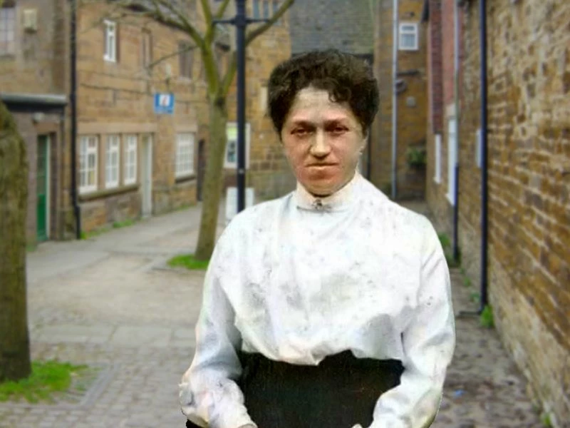 This was a photograph of my great-grandmother, taken in the 1920's, which I colourised and photoshopped into my modern photograph of where she lived. There is certainly nothing offensive, not any copyright issues! I was trying to do a video-generation from the photo.
