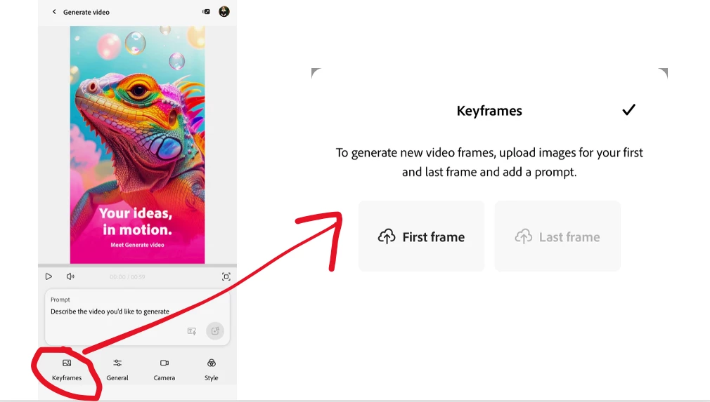 When you click on that image, it takes you to the generation page. On that page, clicking on the "keyframes" button brings up a window which allows you to upload keyframes: