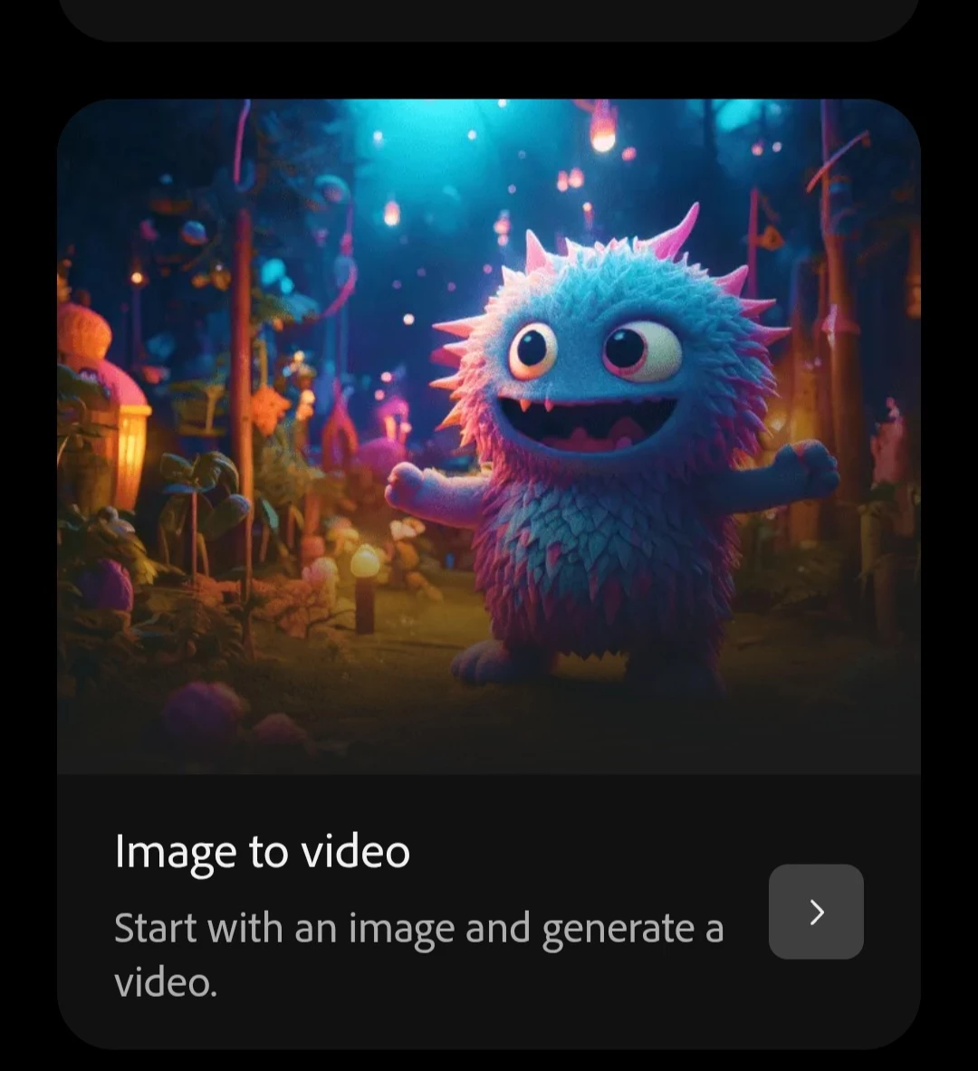 When choosing image to video I do not see an option to upload a photo . Canva actually has a great tool that does this just was hoping Adobe would catch up with them in the ai game since I pay for CC.