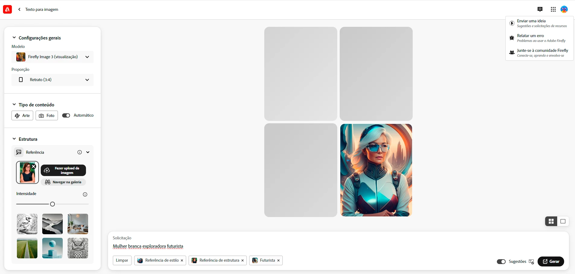 AAna Paula37067450mhvqParticipantForum|Forum|1 year agoApril 29, 2024Imagens não carregamForum|Forum|1 year agoApril 29, 20241 reply125 viewsAo gerar novas imagens com a IA do Firefly, apenas uma opção carrega enquanto as outras três imagens não aparecem.ImagingDesign