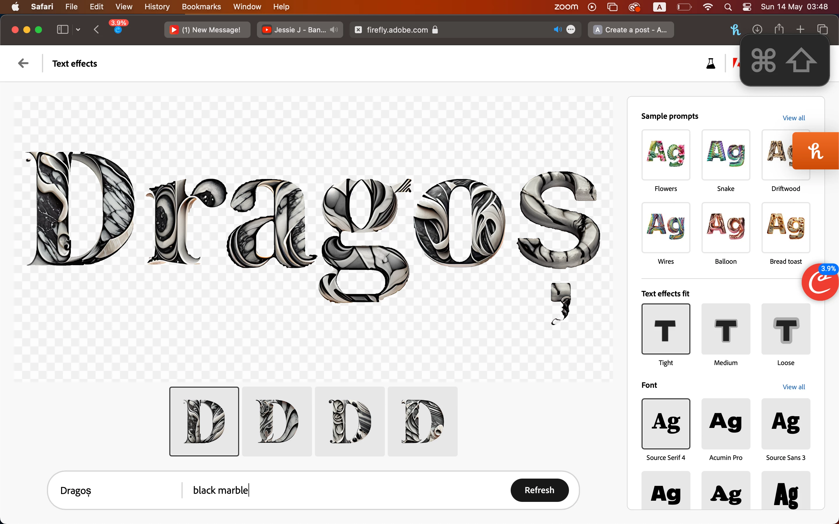 The text effect generator refuses to create anything black, I've tried multiple prompts which included the word black, like black marble or black velvet, and it gave me gray, light gray or almost white options.