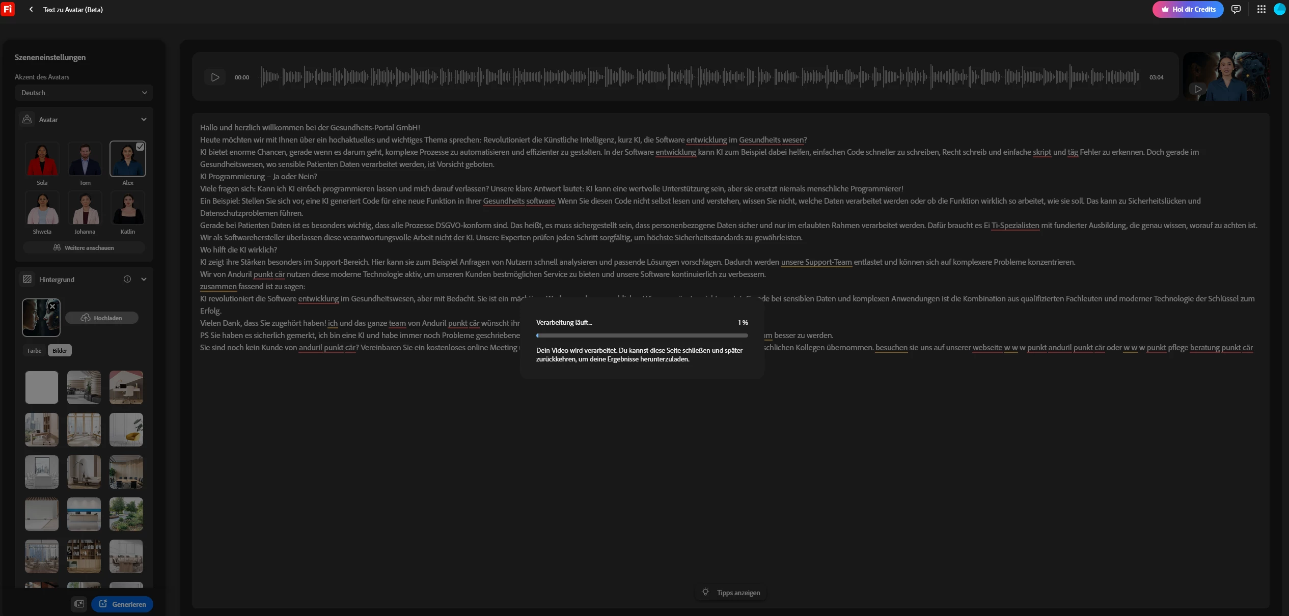 KI Avatar wird nicht fertig generiert