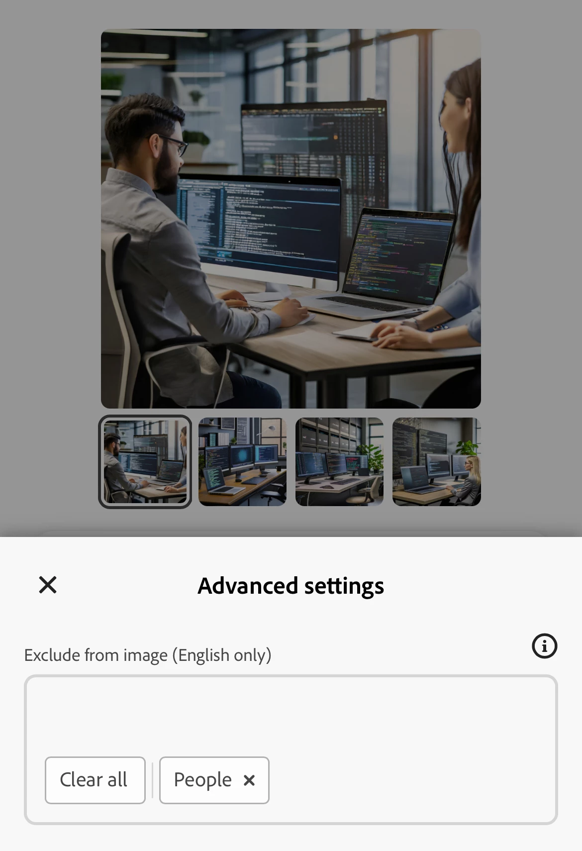 When using advanced settings, the excluded keyword: "people" is set but people are still appearing in subsequently regenerating images.