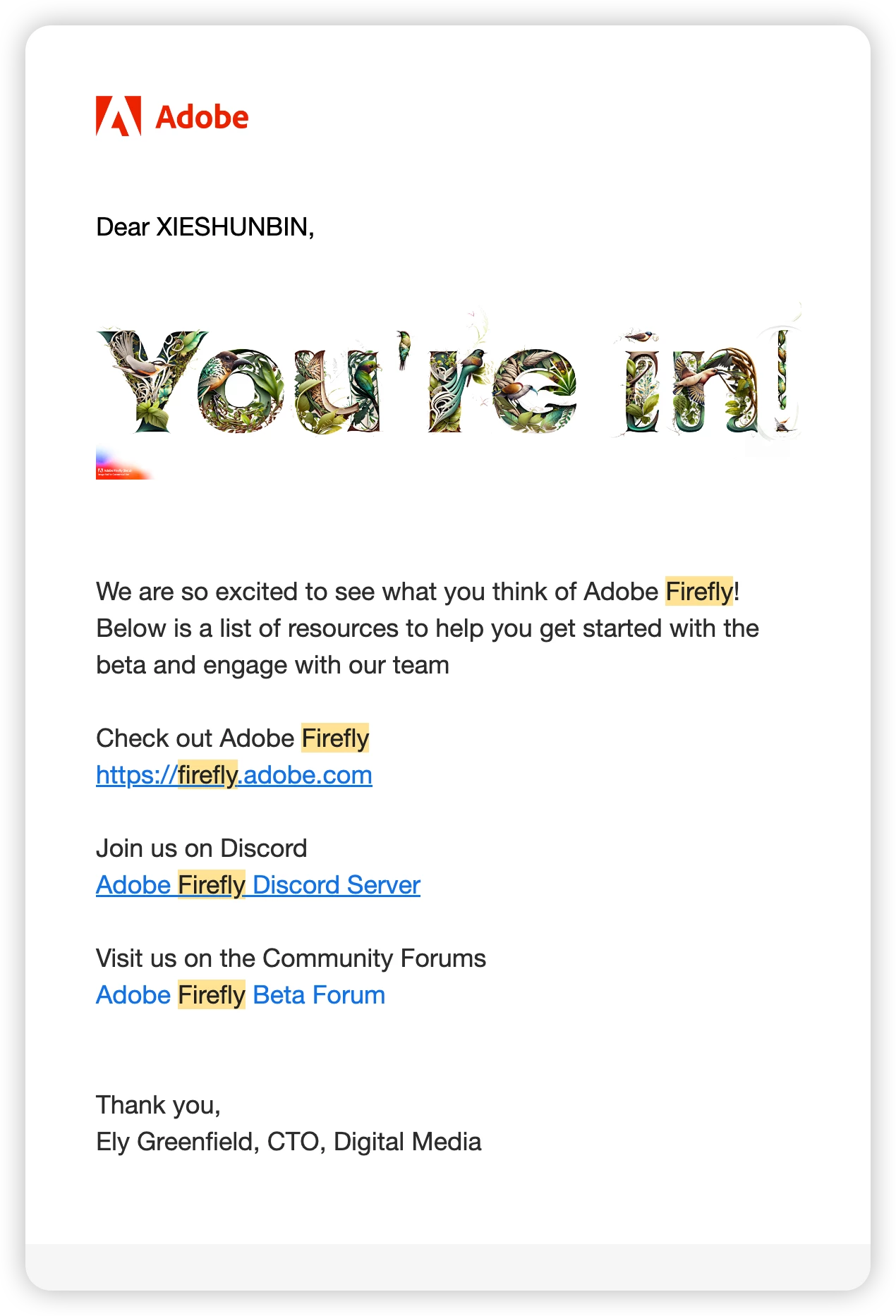 I received the email saying "you're in" for the beta trial on April 6th. I have been trying to use the Firefly feature for a few days. However, after a few days of not logging in, I found that my usage rights were gone today. I need to reapply. Could you please check what the problem is and help fix it? Thank you.
