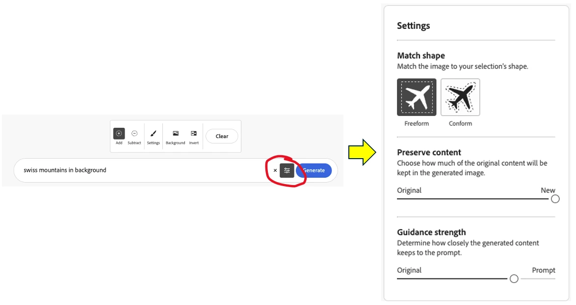 I've recently started using Generative Fill in Adobe Firefly but only just realised there's no settings button. I watched one of their videos walking through how to make art from an uploaded photo and you need to click on the settings to adjust 'preserve content' but obviously I can't do that as it doesn't exist. Any ideas why it's not appearing? I'm on Mac OS Sonoma 14.4.1
