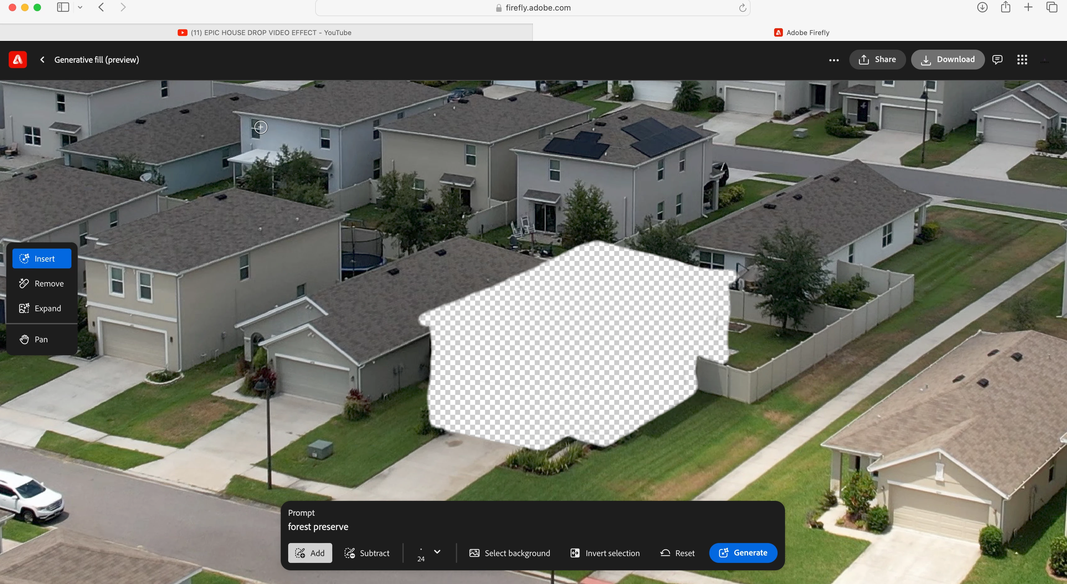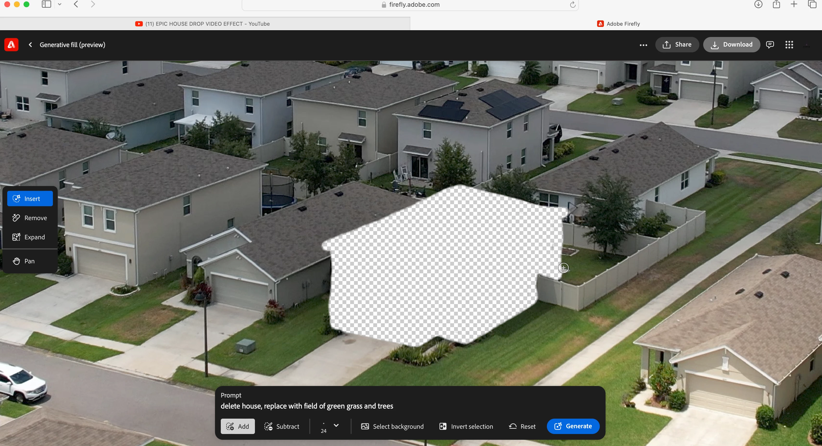 While attempting to use generative fill in adove fire fly for the first time it fialed completely! I was following a youtube influencer how to video and it did not respond. The task was to select and delete a exeterior of a home, the prompts were exhaustive varations of remove home, add field of grass, and tress which it produced nothing but various homes. Please advise a solution.