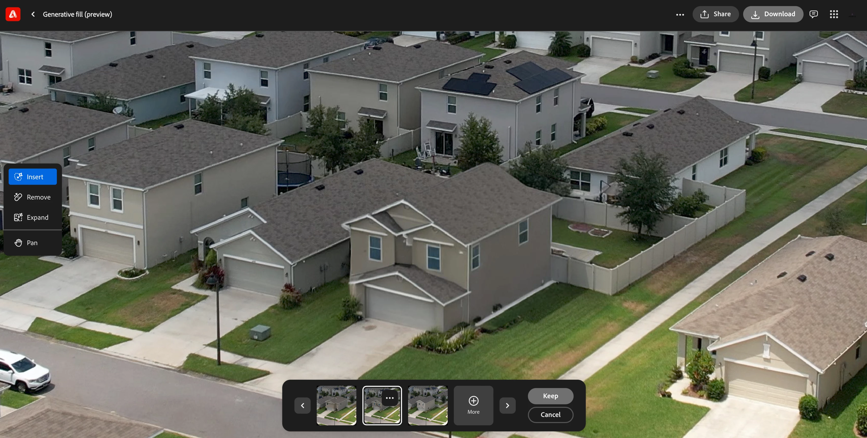 @armorvideophoto your selection also impacts the results. Having a house-shaped selection will cause the AI to think you want house shaped results. Try a looser selection: