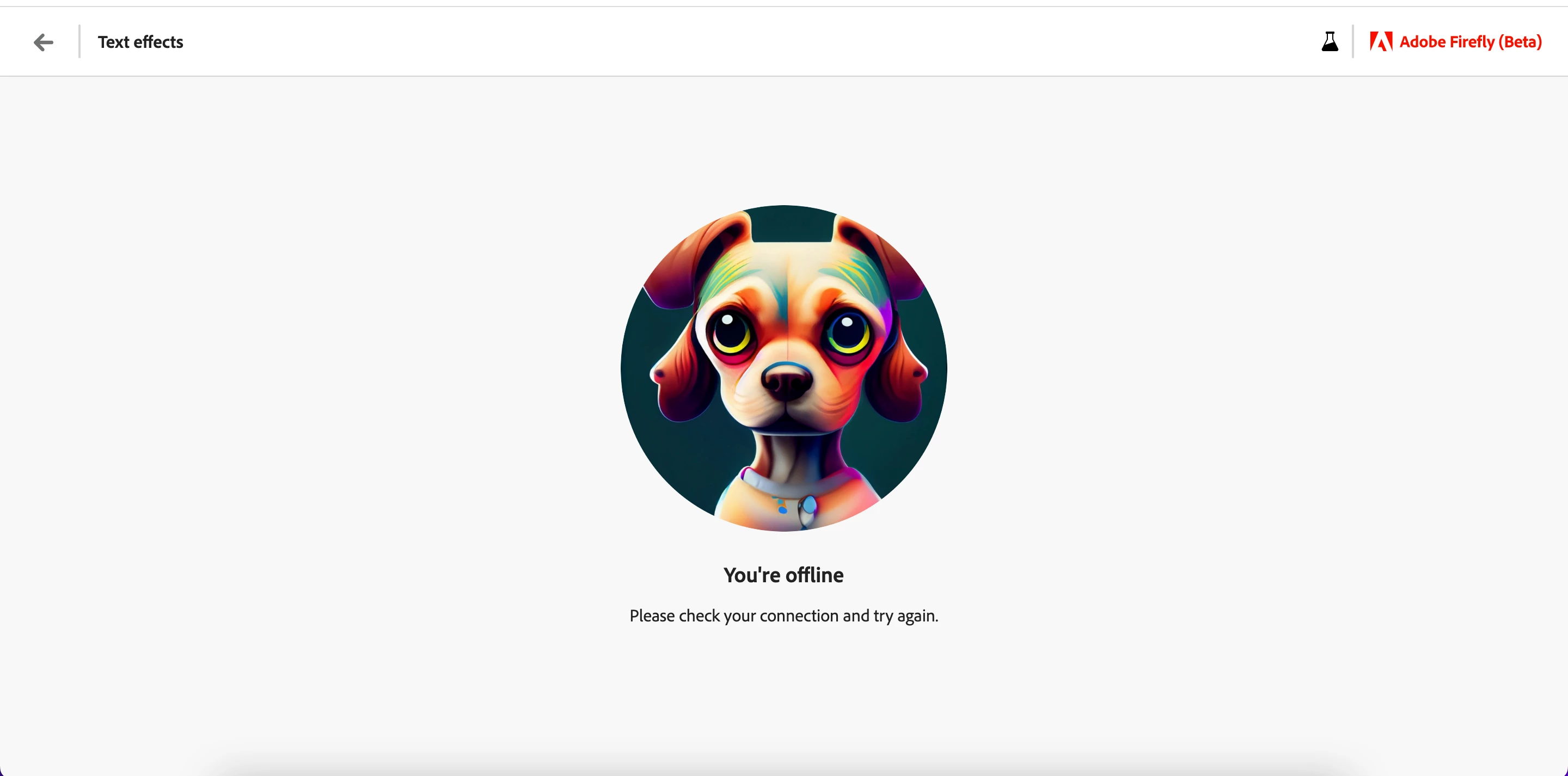 I was trying adobe firefly beta, and I have access to the beta features but when I try to use any feature I get a page saying i'm offline even though I have a pretty good internet connection.