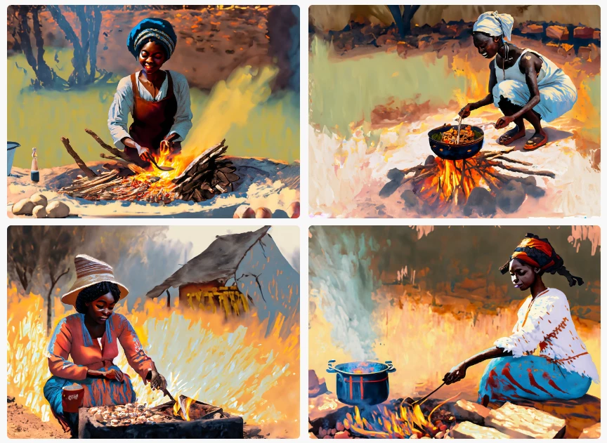 Generation term: "South African Xhosa woman cooking on an open fire in the outdoors"
