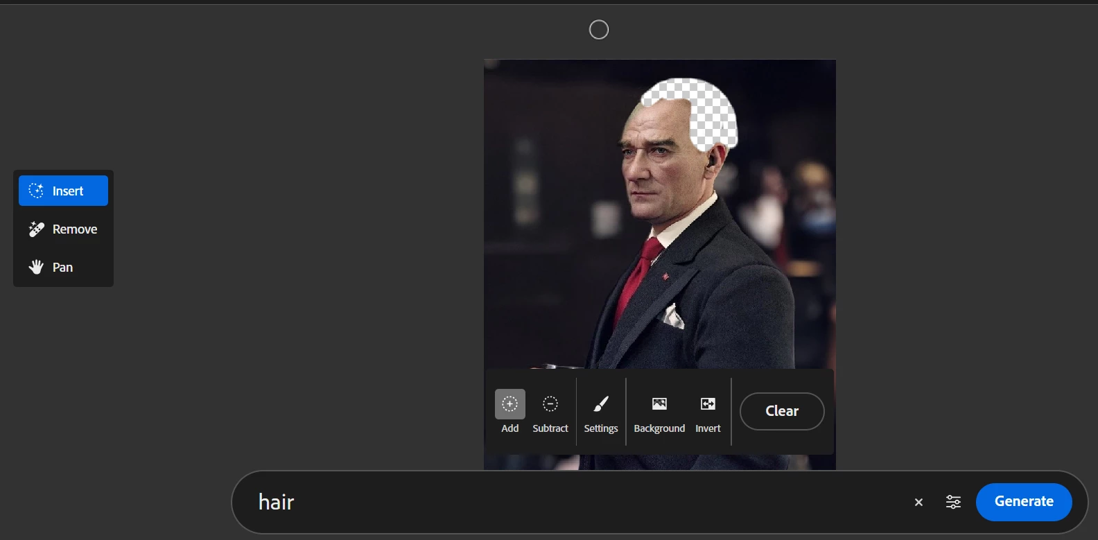 In order to alter changes you would have to select an area around in which the hair will be placed and to insert the description of what kind of hairstyle you want to generate.