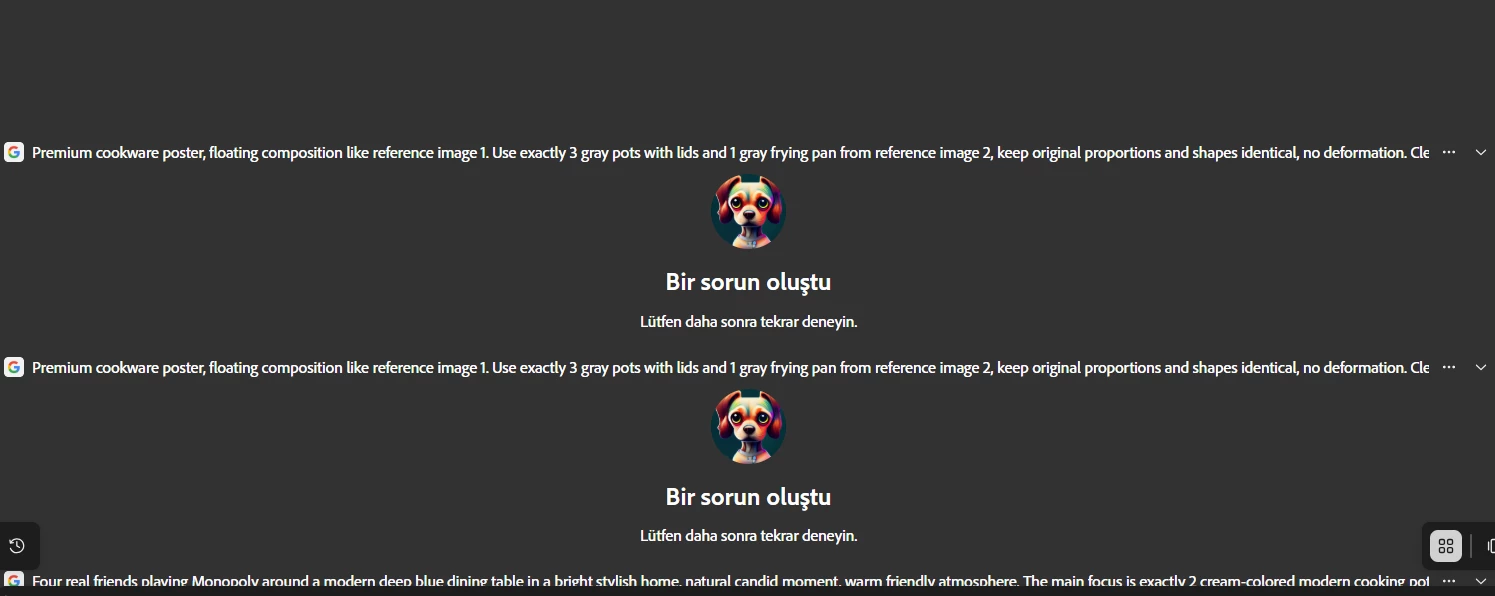 GTP image 1.5 ve Gemini 3.1 kullanırken sürekli bir sorun oluştu lütfen daha sonra deneyin hatası alıyorum. kontrol edermisiniz