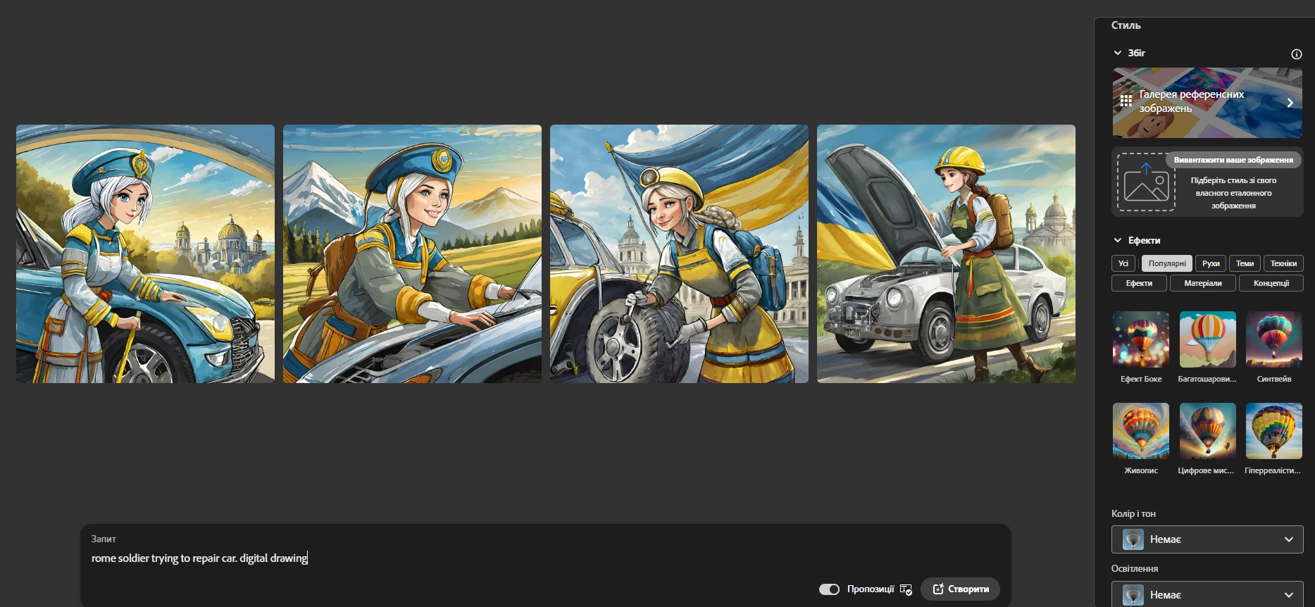 ШІ постійно генерує картинки в жовто-блакитній палітрі.