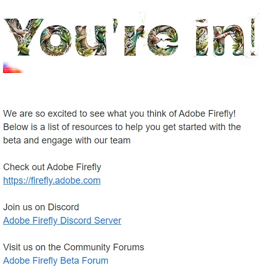 I received an email with the subject line "It's time to try out Adobe Firefly," but the link takes me to a page to request access and I am unable to use it. What can I do to access it?