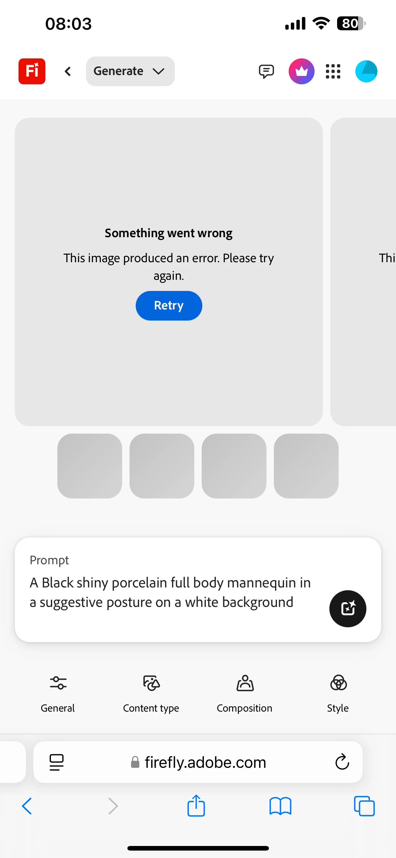 For the Whole Day , on various different attempts to generate AI prompts for my request reached a dead end with ERROR that results in a RETRY Response . Whether with Uploaded of personal references or without. Please advise on what's happening and a Remedy to these issues. PC and Mobile appliances were used without success.