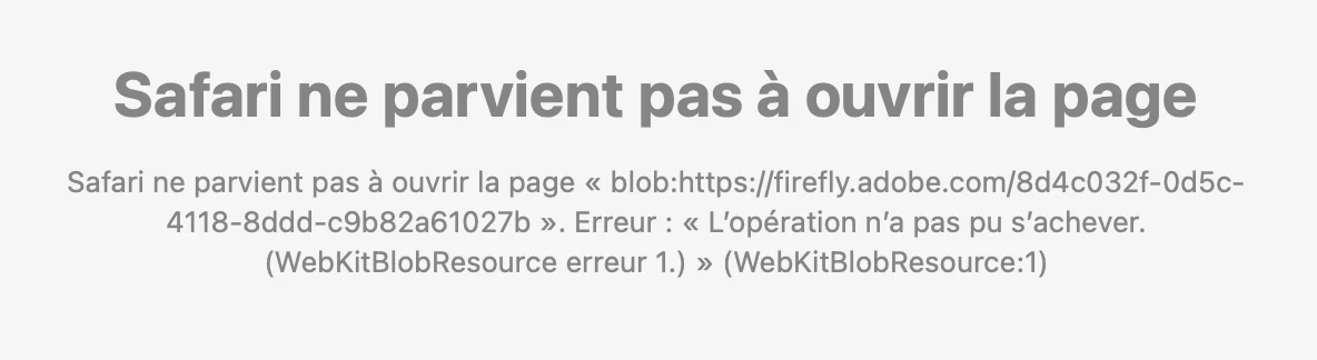 Téléchargement de l'image générée dans Adobe Firefly impossible. message d'erreur joint en PJ
