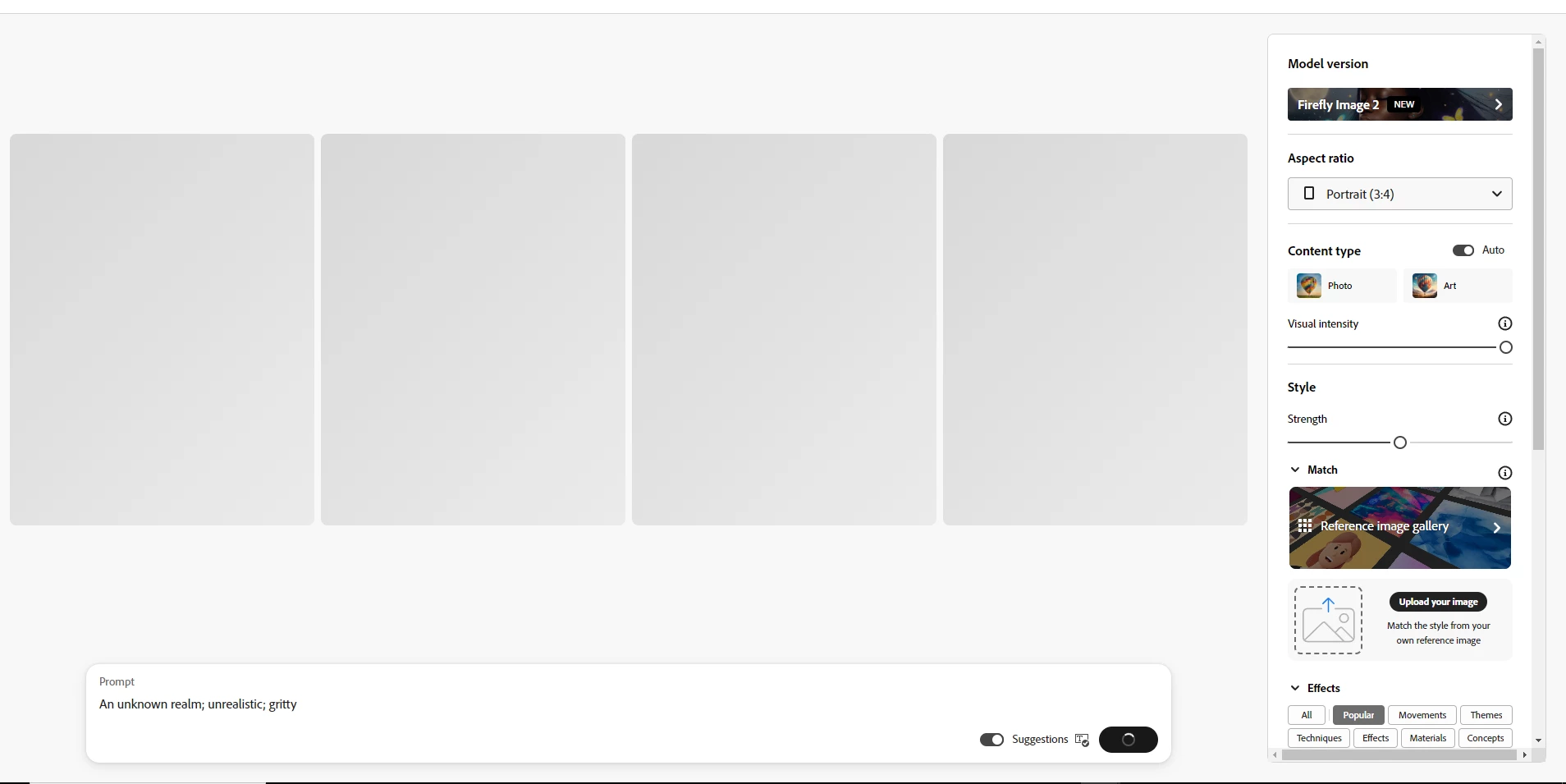 I've wrote the prompt ''An unknown realm; unrealistic; gritty'' and the loading takes a lot of time. At the third try after 4 minutes it generated four image and after one another try it said ''this image produced an error. Please try again''