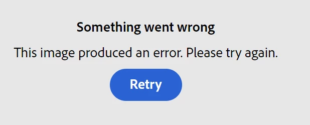Since yesterday, I and several colleagues have found that, whatever prompt you enter, images are not being generated. All you get is a "Something went wrong. The image produced an error. Please try again". We tried prompts that Adobe has suggested in the Text to Image front page as well as prompts that have worked for us perfectly well before. This is posted as a discussion as well by another user, and I replied to that, but there has been no response to that from Adobe. The most recent prompt I used was, "A happy human looking robot writing a poem and painting a picture and carving a sculpture." Error message below. Please help!