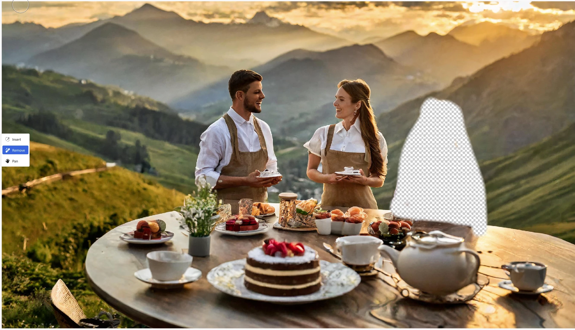 The AI works opposite to the prompt. If we tell it to remove people from the background it add people instead of subtracting them