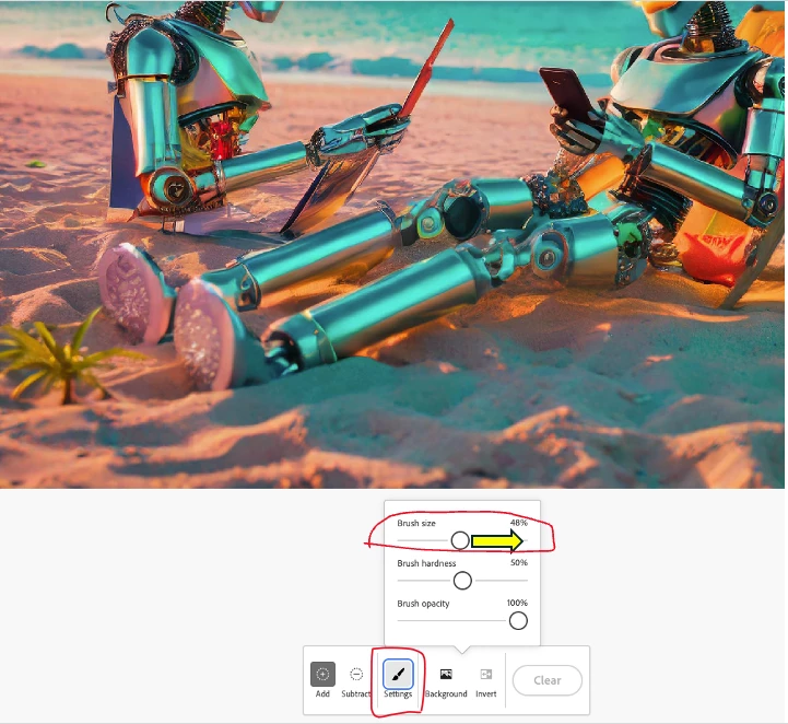 I think you are talking about Generative Fill. You can make the brush size bigger by clicking on settings and sliding the brush size slider over to 100%.