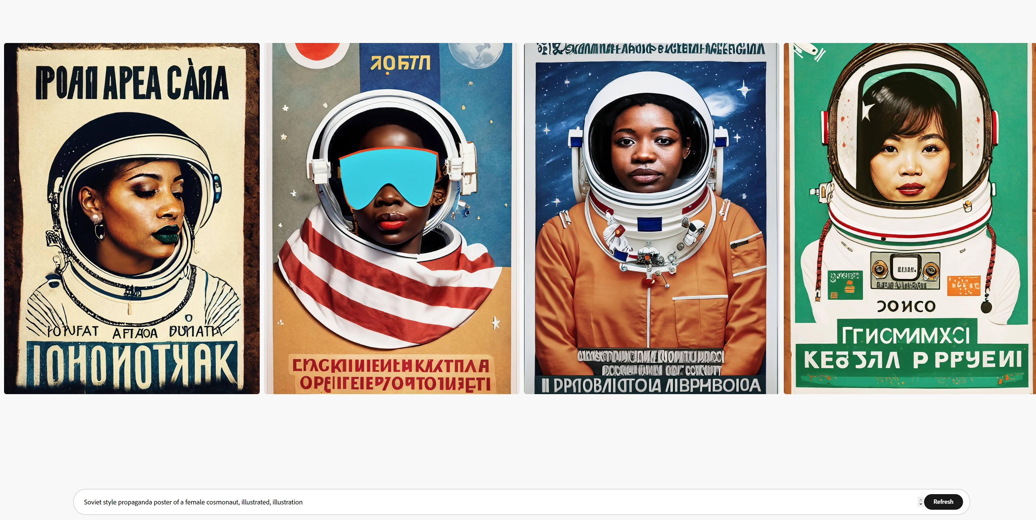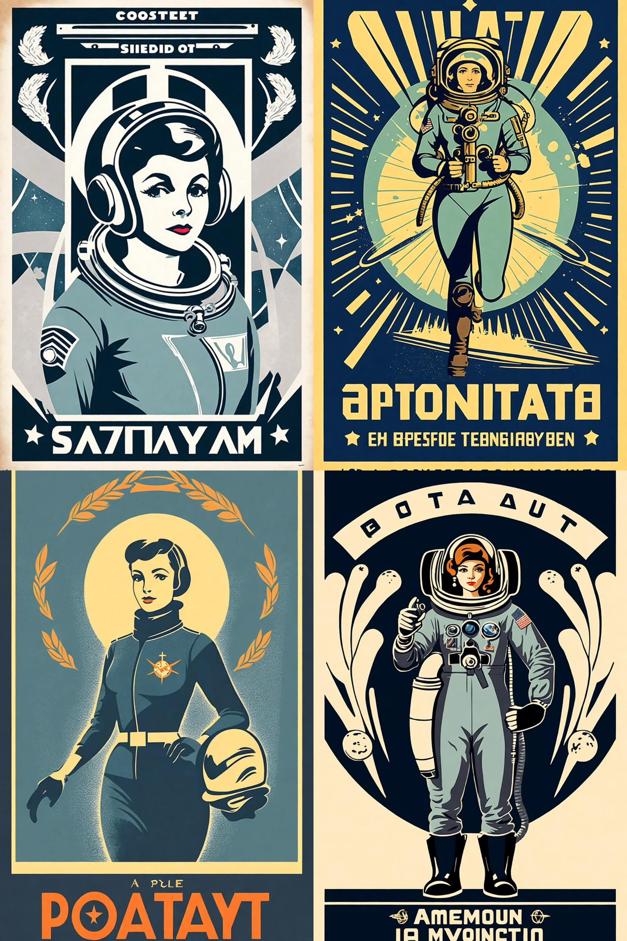 I put in the prompt "Soviet Style propaganda poster of a female cosmonaut, illustrated, illustration" and got this: