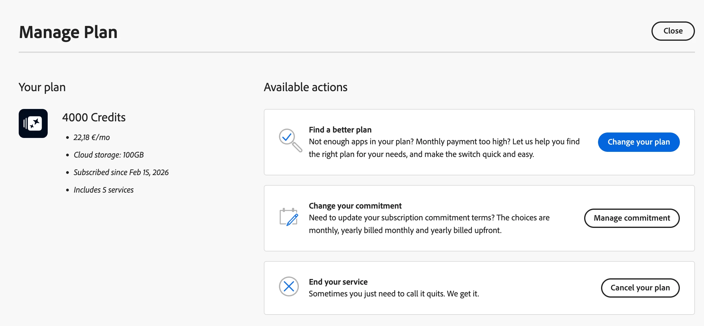 I go to my account page. I see all 5 plans. I click on “Manage plan”.