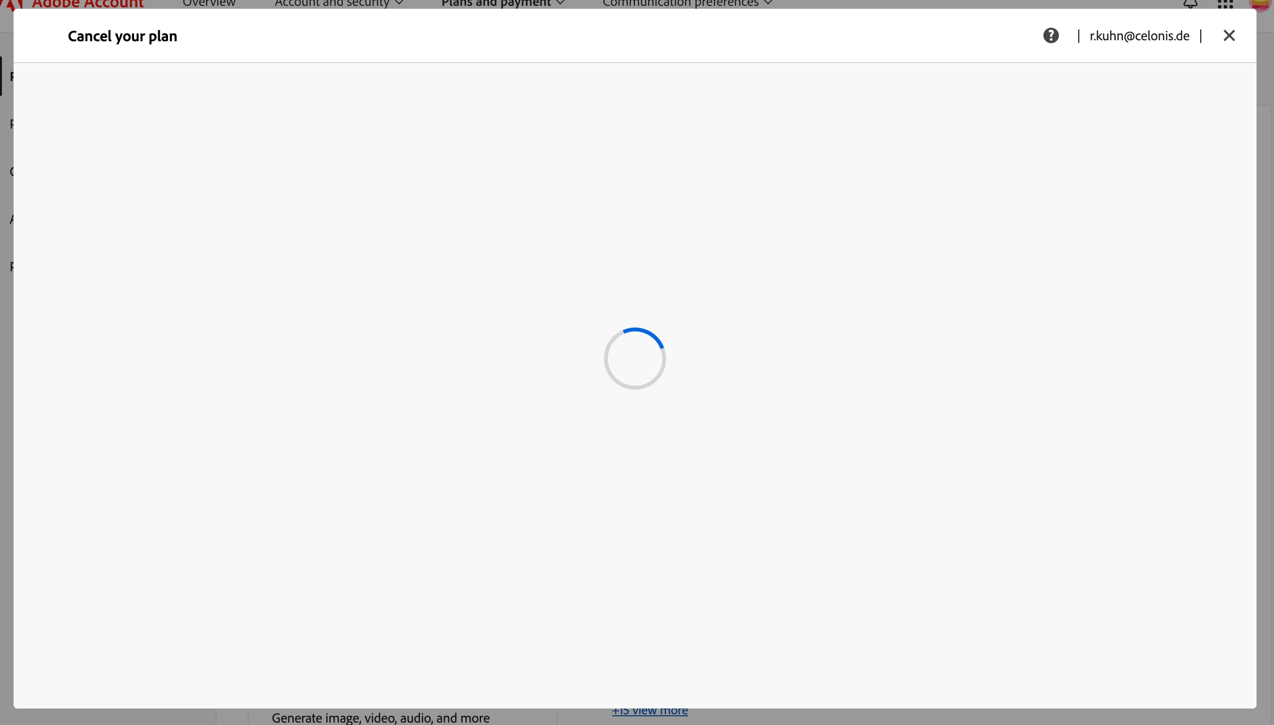 I click on “Cancel your plan” and then nothing happens. I get the next screen and the wheel will spin for hours without ever showing the page.