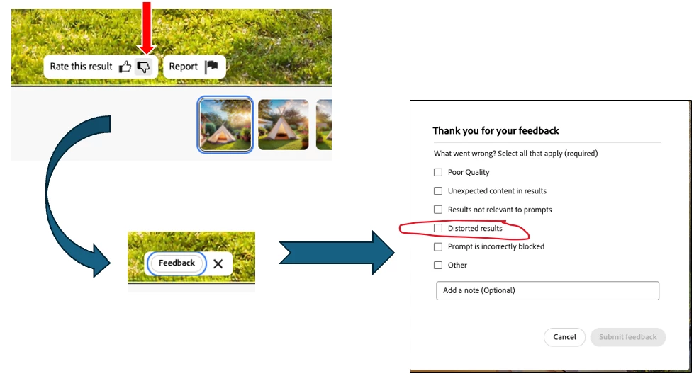 Several people have reported this problem. I have not seen a response from anyone at Adobe yet.  Please thumbs down these images and provide feedback that they are distorted.  Hopefully we will hear soon about this issue.