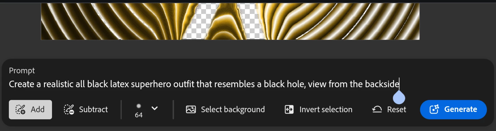 superhero in realistic loosely-fitting all-black-spandex outfit , view from rear