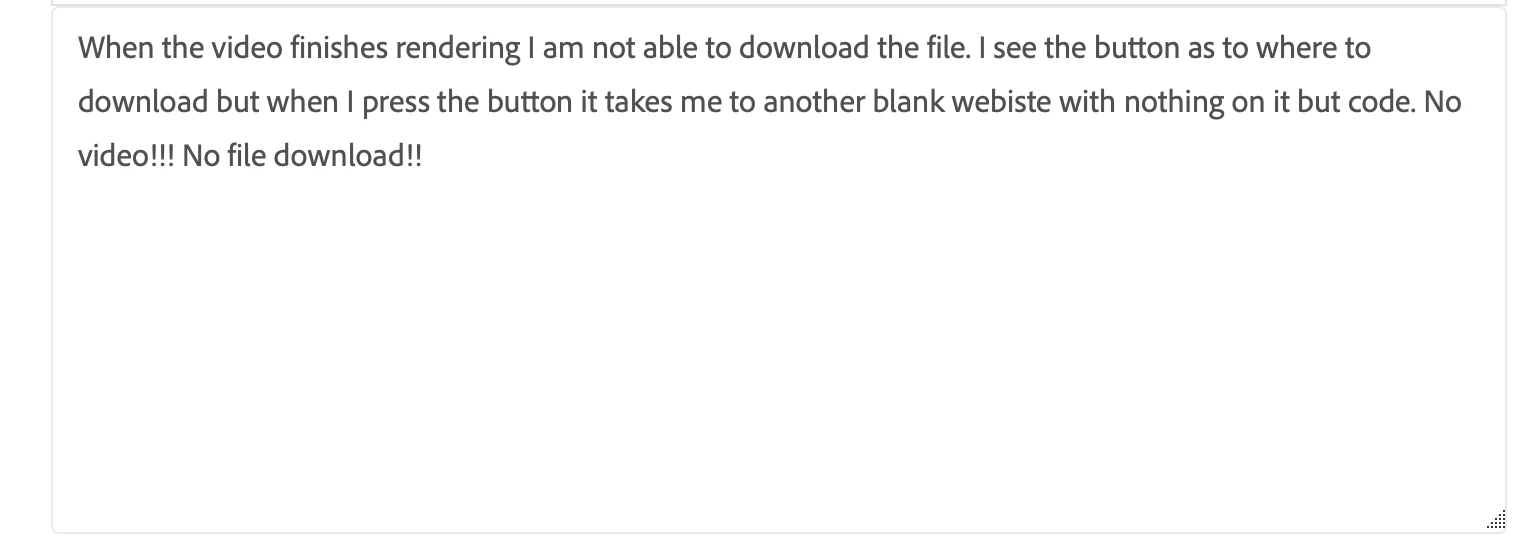 tusheap8308951ParticipantForum|Forum|2 months agoNovember 21, 2025Wasted credits on bad results!!!Forum|Forum|2 months agoNovember 21, 20250 replies6 viewsWhen the video finishes rendering I am not able to download the file. I see the button as to where to download but when I press the button it takes me to another blank webiste with nothing on it but code. No video!!! No file download!! Generate ImageGenerate VideoVideo editor
