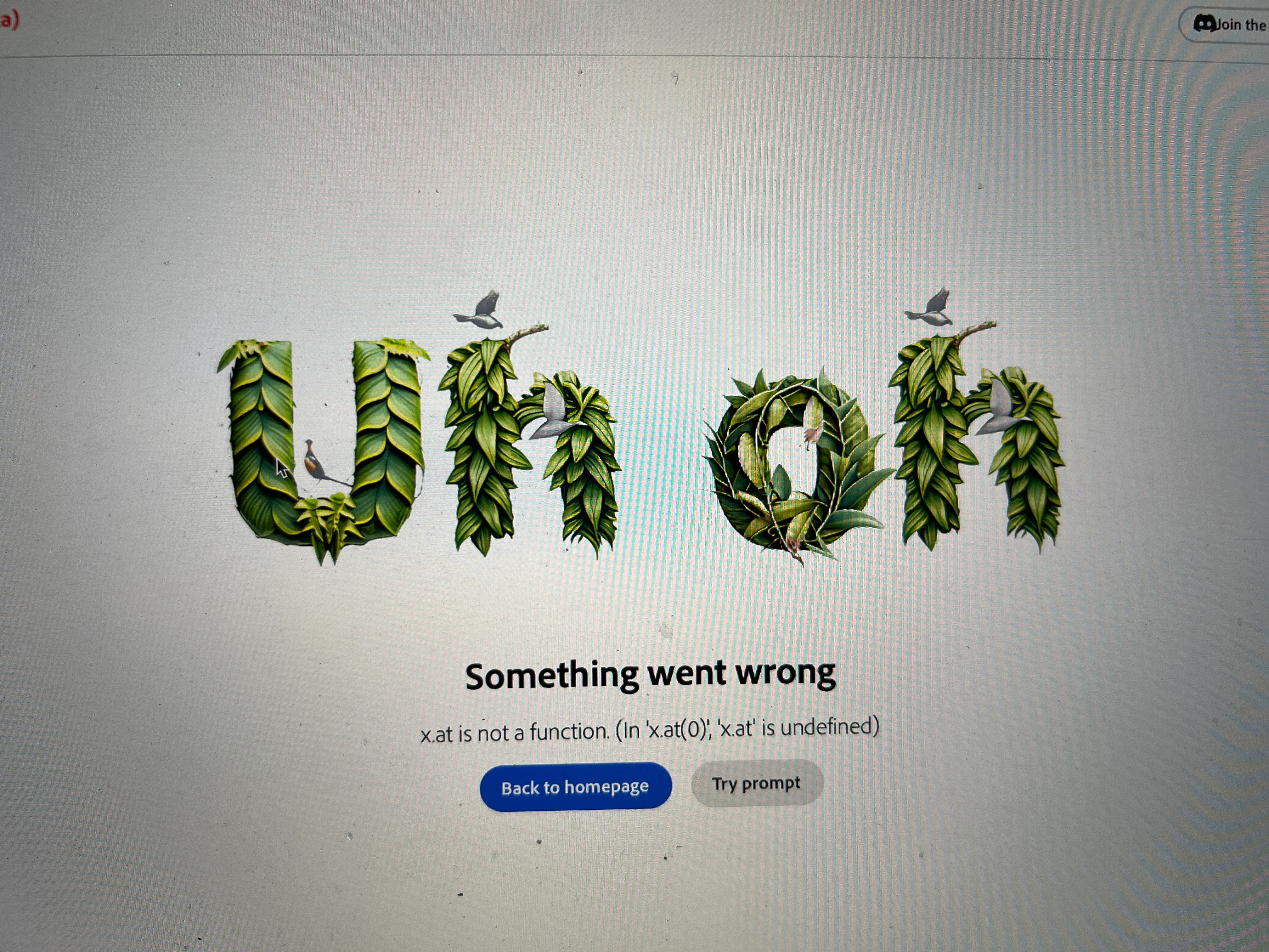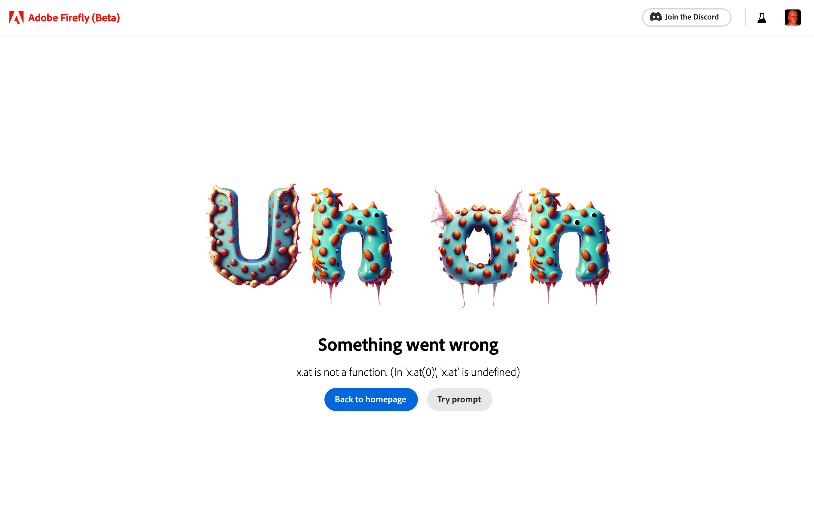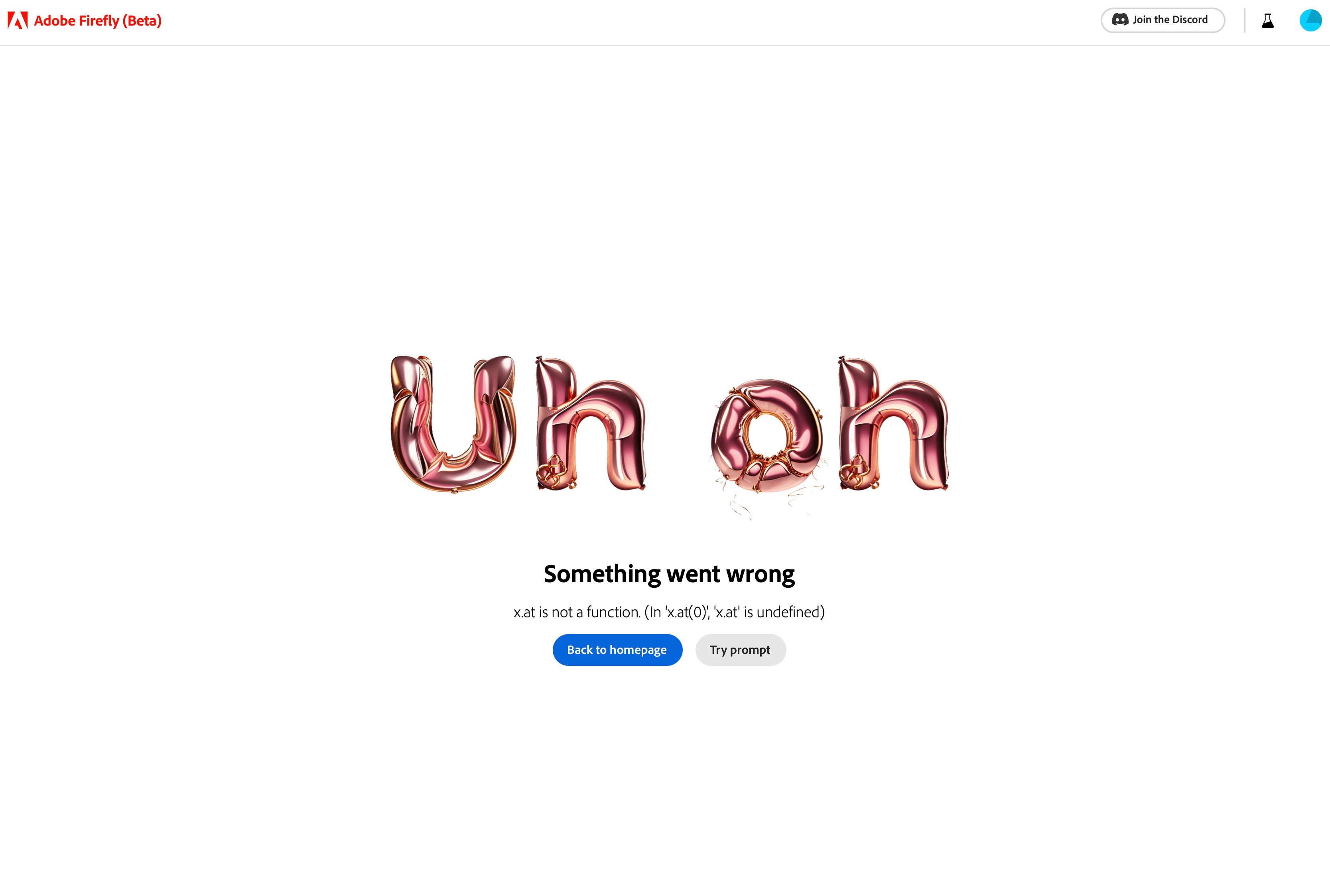 When trying to use Text to Image the error is saying "UH OH. Something went wrong. X.at is not a finction. (In 'x.at(0)', 'x.ar' is undefined).