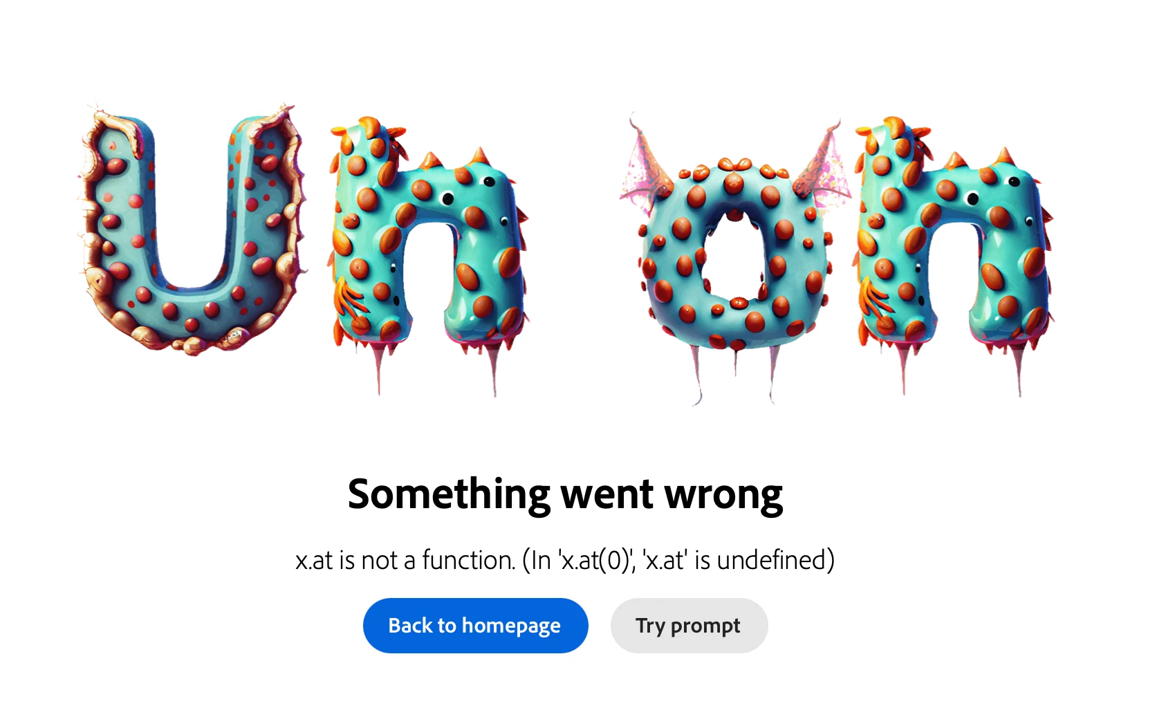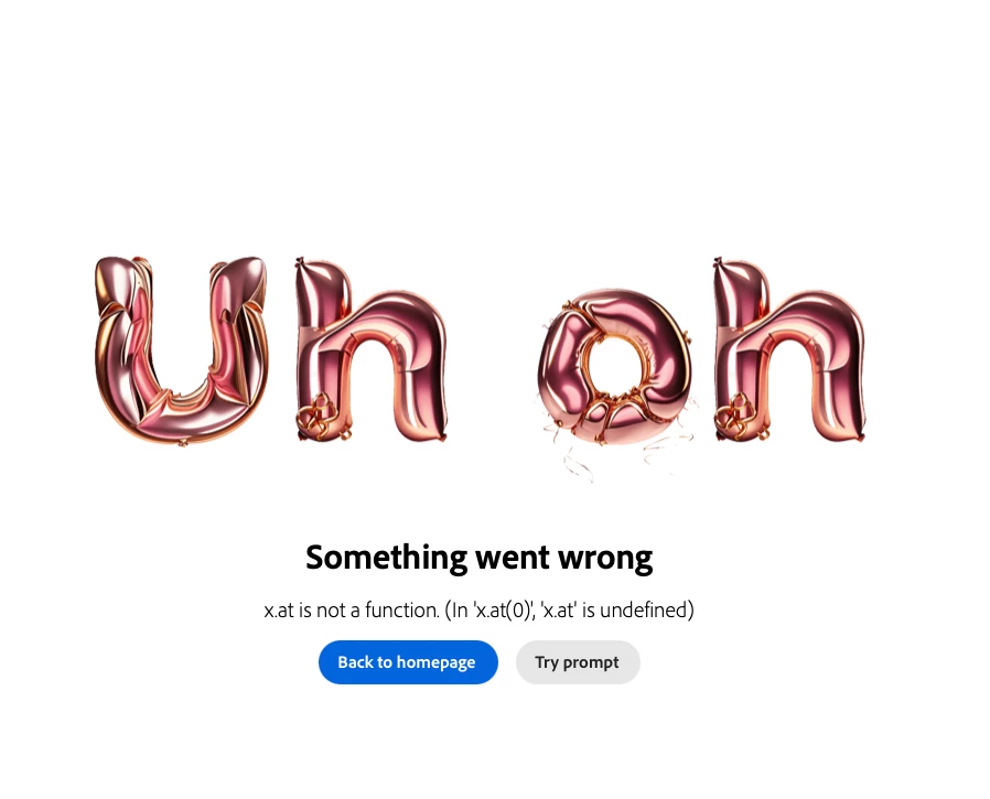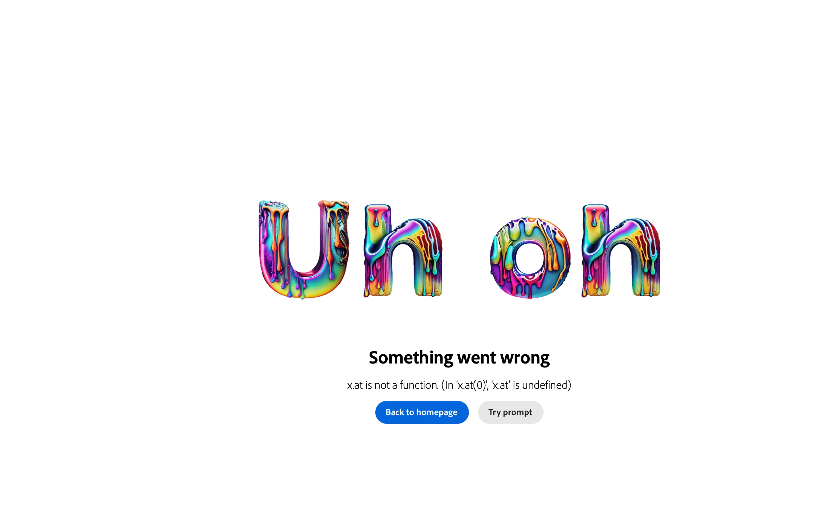 When selecting "Try Prompt" on the "Uh Oh something went wrong" page it takes you to the "Text Effects" editing page.