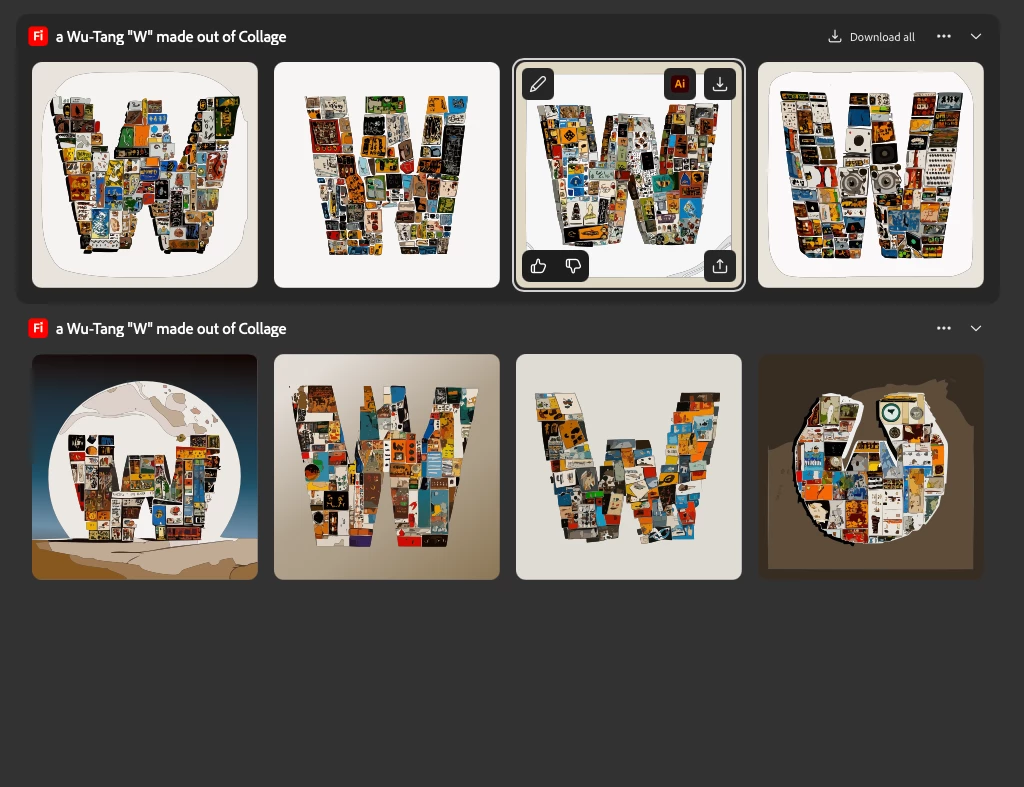 It will not use the Wu-Tang "w" because that is trademarked (WU-TANG - Trademark Details) and Firefly will not generate trademarked items or copyrighted characters.
