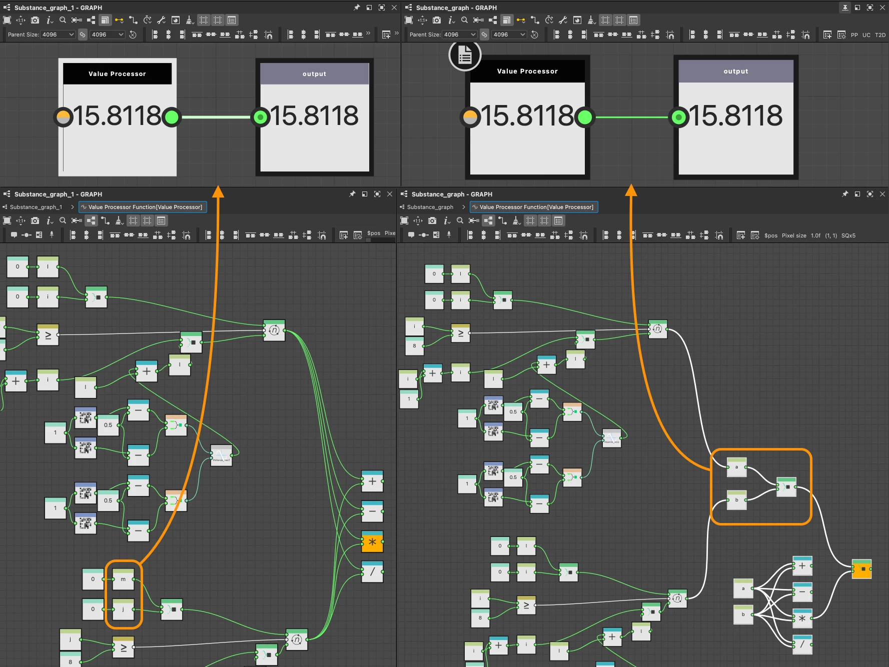 在 Value Processor 和 FX-Map 中,使用 While 循环和 Distance_vec2 进行累积计算后,加法、减法、乘法和除法会产生不正确的结果。