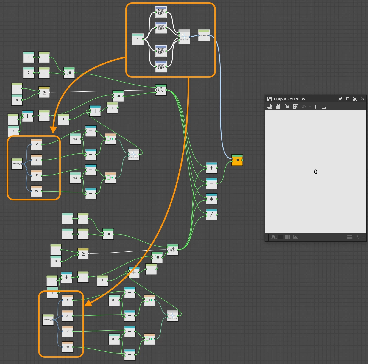 Apologies, using the Random node is not my actual intention. My real need is to calculate the length differences between different segments of a curve. I am using a While loop and Distance_vec2 for cumulative length calculations along the curve. When performing addition, subtraction, multiplication, and division on the cumulative results, incorrect outcomes occur. If you need the original project, I can send it to you via email.