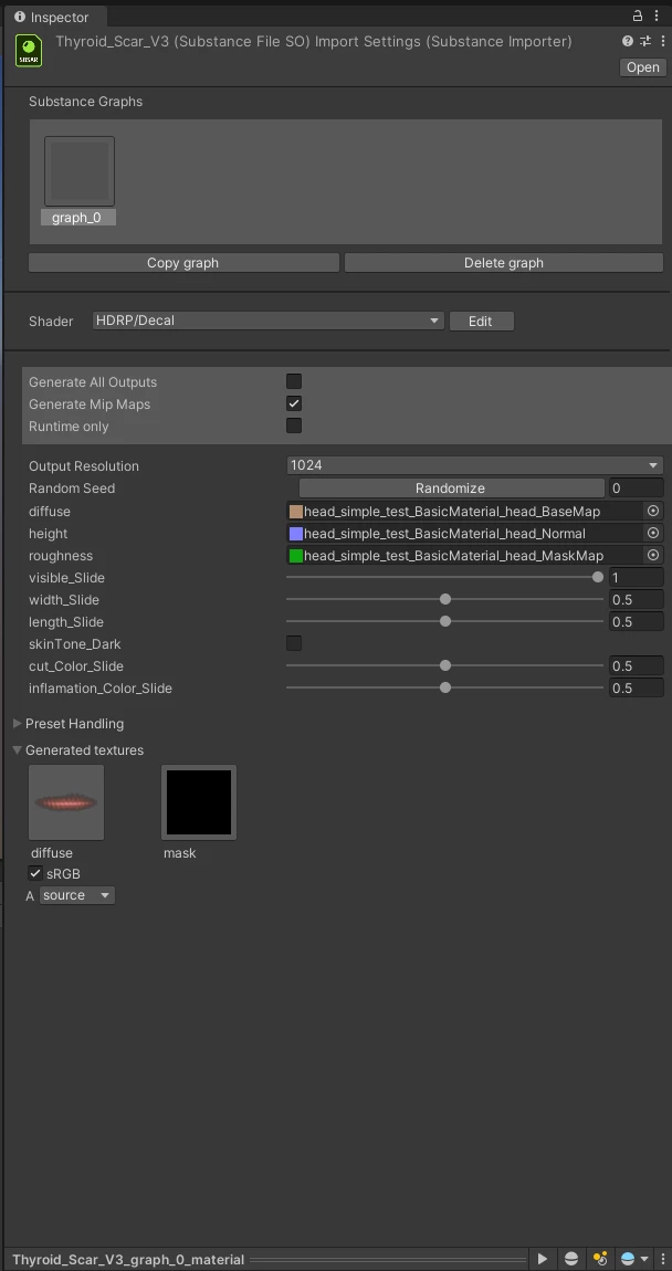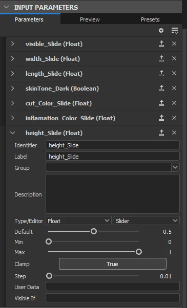 I've made a decal material for Unity with a series of custom inputs for the user to control, with one of them being a float slider to determine the value of the height mask. However, when I import to Unity, every input is visible and working except the height slider, which doesn't even show up. Is there something I'm doing wrong? Or is it because it's a decal material?