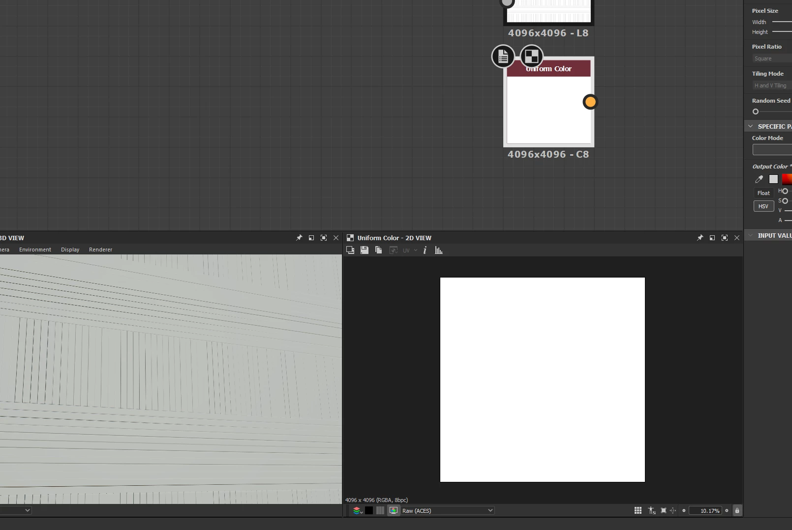 As i was working i noticed that the 2D preview of my texture wasn't as white as i would expect it to be. It looked closer to mid gray than what i'd expect pure white to look like. I'm working in aces and when i switch my 2D preview to RAW, the whites become the whites i'd expect to see but that's obviously not a good sollution for working since when i start adding any colour to my texture, working in RAW will scew the final results in my renderer.