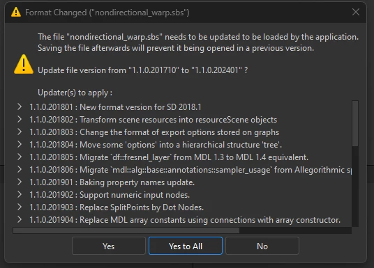 When i open an SBS file in substance designer, it always warns me that the sbs format has changed for a dependency.