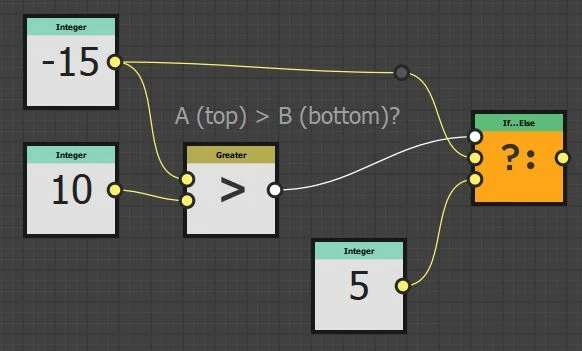 So the greater than compares "a > b", so in this case it tells us that -15 is higher than 10. Because the outcome of this is -15, not the expected 5. Proof of concept graph is attached. The moment I instance this I get -15.