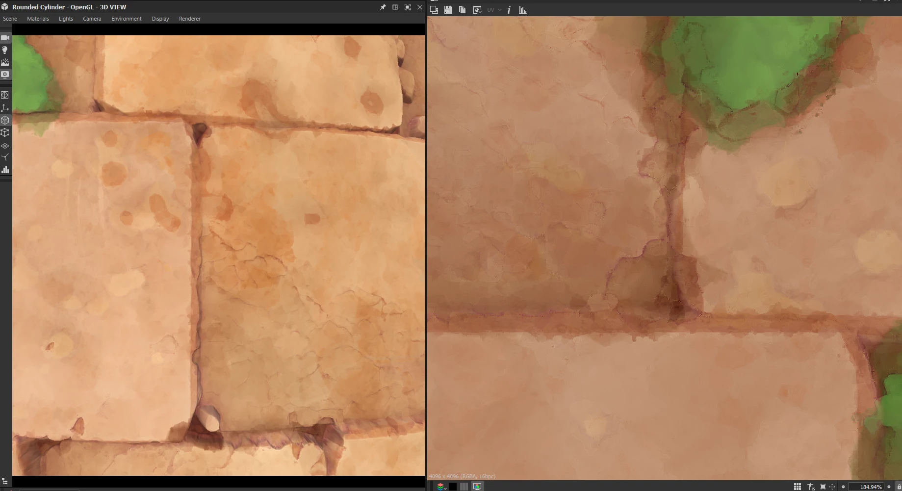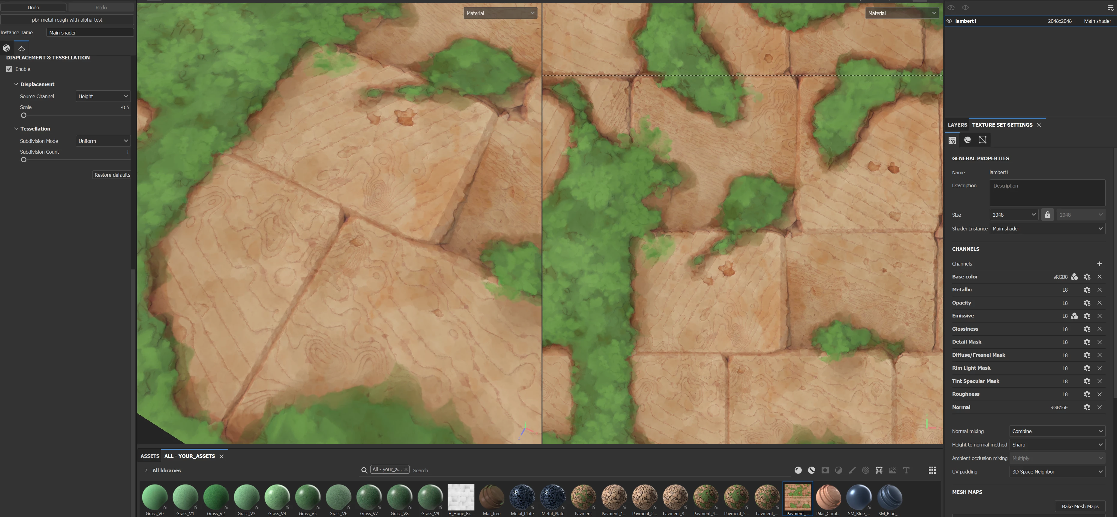 I have a somewhat annoying issue, let me explain: I created a Smart Material in Substance Designer and I'm trying to apply it to a flat surface in Substance Painter... But I'm getting this "aliasing" effect on the material which doesn't appear in Substance Designer! I noticed that it's present on the base color and the normal map.