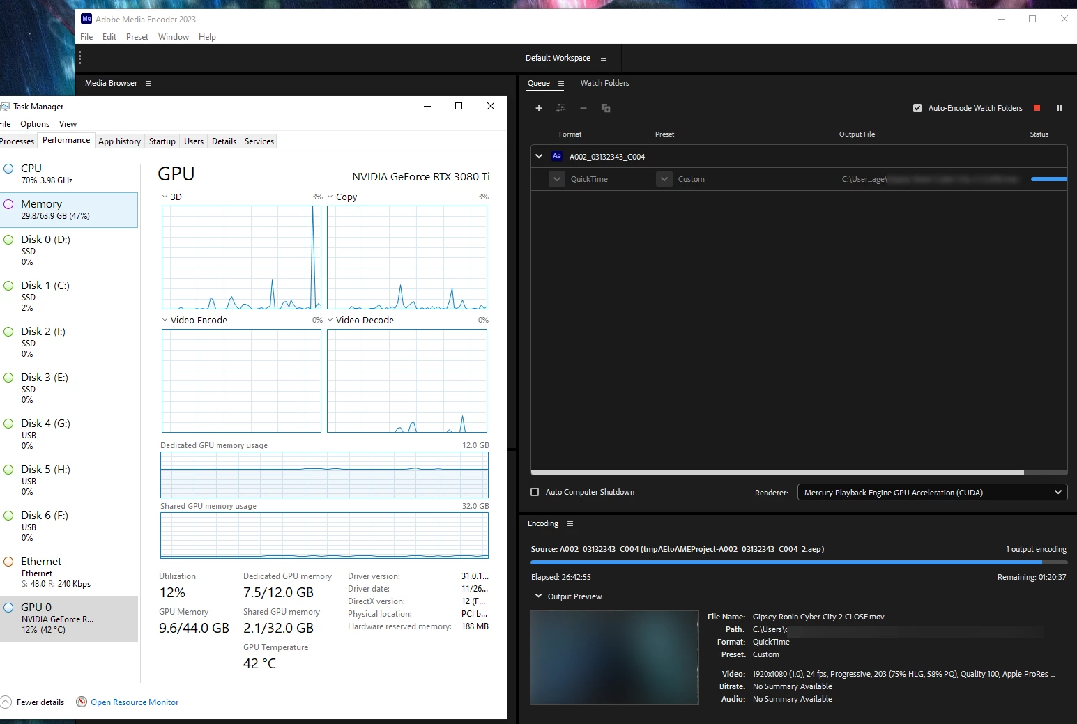 Can Adobe brute force Nvidia to do 100% of the work?? Its barely used. I can only imagine if this was for a client. Im ok if my GPU sounds like a super sonic turbine spinning if it means it gets used to render faster.